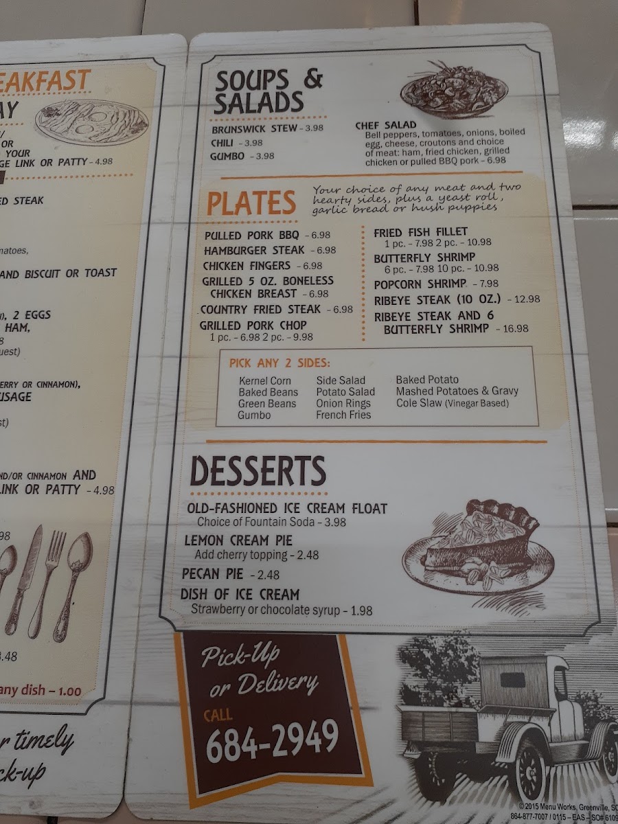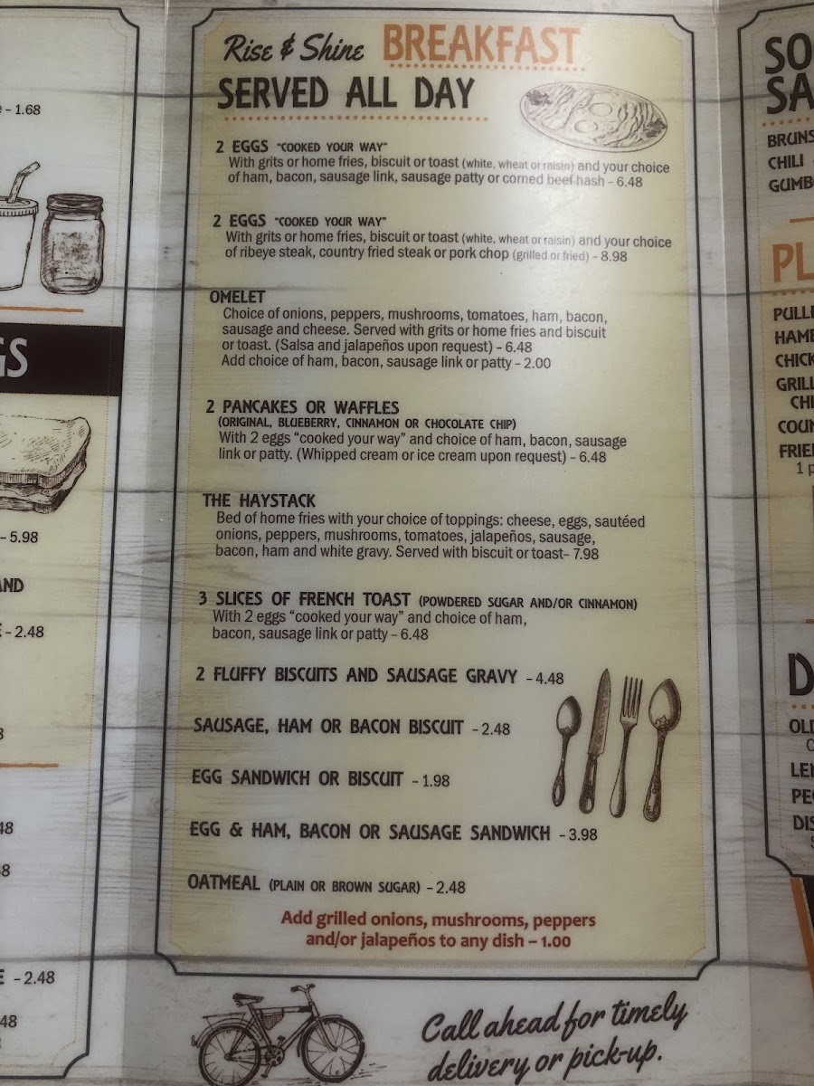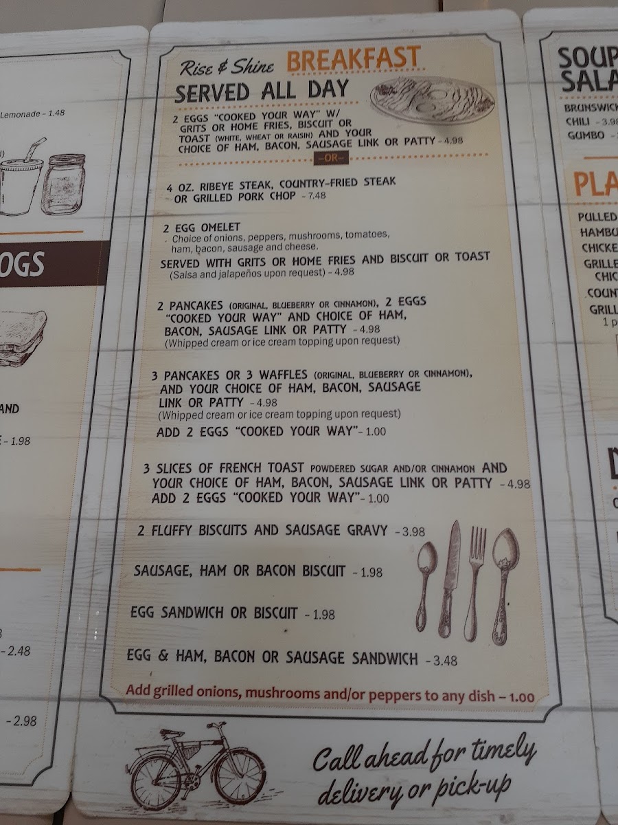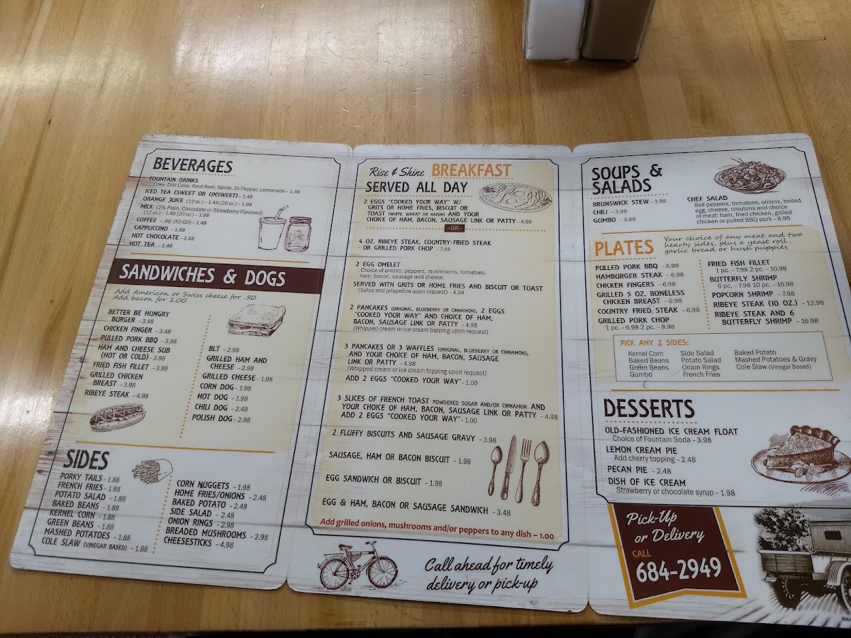 - Breakfast Selections: Start your day right with the "Rise & Shine Breakfast" options, featuring everything from 2 eggs cooked your way, grits or home fries, to hearty ribeye steaks and country-fried steaks. If you have a sweet tooth, their pancakes are a must-try!